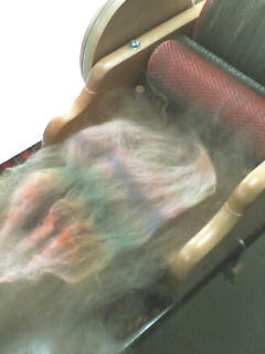 ● このように紡ぐ準備が出来たら、糸紡ぎに入ります。 カーディングせずに、フリースのままほぐして紡ぐこともあります。 スピンドルのページへ続く