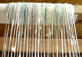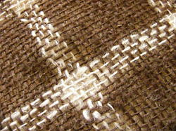 むっちりほわっとしたこの毛の手触りがよくて膝掛けを織りました。 単糸3番手 30羽使用 2006年1月完成