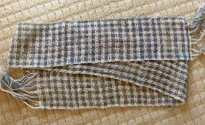 織りの教室で初めて織った4枚ソウコウの千鳥格子のマフラーです。ひま研の酒井さんのサッチェビ(サフォークとチェビオットの交配種)を使いましたがむっちりしていて気持ちいいです。 単糸7番手